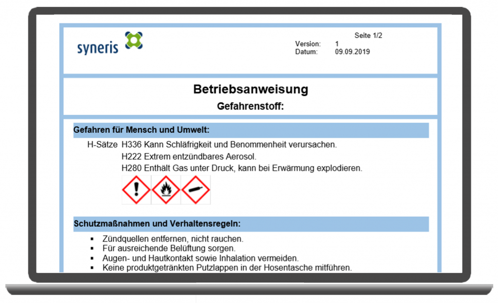 Operating instructions are automatically created in syneris and the working substances used are entered in the safety and health document.